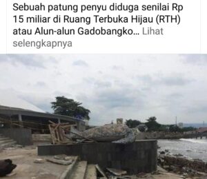 BUSERMETROPOLIT.COM-Sukabumi Proyek pembangunan monumen Penyu di alun alun godongbangkong diduga menggunakan bahan kardus serta matrial yang gampang rusak menelan anggaran Rp 1,5 Miliar viral dikarnakan matrial yang digunakan dari kardus dan kayu,