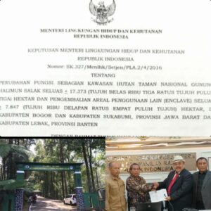 SUKABUMI ¦ Terbitnya Keputusan Menteri Lingkungan Hidup dan Kehutanan RI Nomor SK-237/Menlhk/Setjen/PLA.2/4/2016 tentang Perubahan Fungsi Sebagian Kawasan Hutan Taman Nasional Gunung Halimun Salak (TNGHS) Seluas 17,373 Hektar dan Pengembalian Areal Penggunaan Lain (Enclave) Seluas 7,847 Hektar di Kabupaten Bogor, dan Kabupaten Sukabumi, Provinsi Jawa Barat dan Kabupaten Lebak, Provinsi Banten—, memberikan angin segar bagi masyarakat setempat yang lama mendiami lahan TNGHS, sekaligus keuntungan bagi pemerintah daerah.