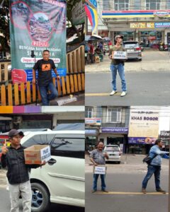 SUKABUMI – Sejumlah wartawan yang tergabung dalam komunitas Wartawan Utara Kabupaten Sukabumi menggelar aksi Penggalangan Dana kemanusiaan untuk membantu korban bencana banjir bandang di Sumatra. Aksi peduli ini dipimpin langsung oleh Isep Panji, jurnalis dari Tatarmedia, yang sejak awal menginisiasi gerakan solidaritas tersebut.Depan Kecamatan Cibadak,Rabu, (3/12/2025)